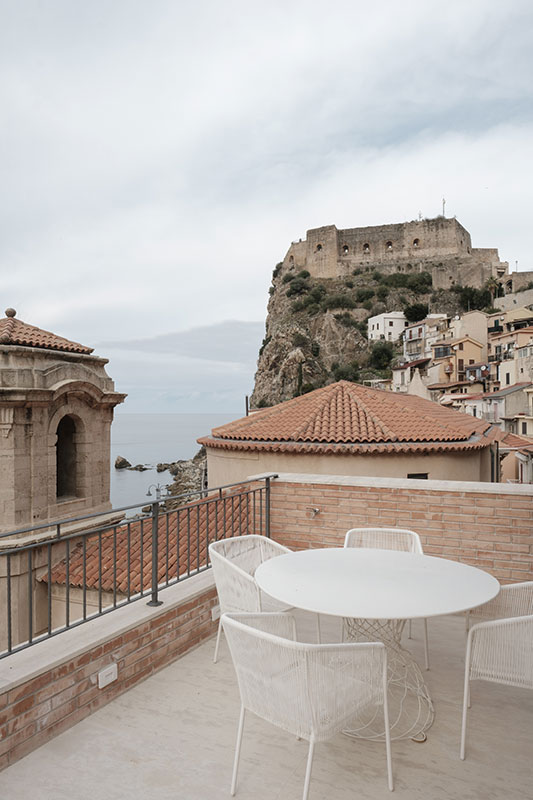 La cucina completamente attrezzata vi permetterà di preparare i vostri pasti preferiti, con frigorifero, forno, microonde, macchina del caffè e bollitore a vostra disposizione. Tuttavia, il vero punto forte dell’appartamento “Tramonto” è la magnifica terrazza privata con una vista mozzafiato sul mare e sul suggestivo castello Ruffo di Scilla.